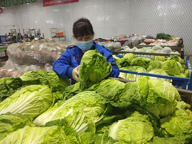 “忙的时候,3小时我要分拣2000斤蔬菜。”原本负责仓库出入库单、食品许可证、核酸检测等工作的张芙自愿调岗去支援蔬菜分拣工作,劳动强度大而且加班是家常便饭。“已经连续几个周末和同事一起在岗位上度过的了。”张芙说。