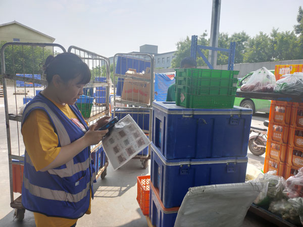“分拣分为两个步骤,第一步是挑选出残次菜品,将完好的菜品放入袋中;第二步是分拣称重再打包……”在蔬菜分拣流水线上,分拣工张芙熟练地向记者介绍着工作流程。“1小时内黄瓜之类的蔬菜,一般我能分拣90个包裹。”提起工作效率,带着口罩的张芙眼角上扬,让人感受到一股自豪。