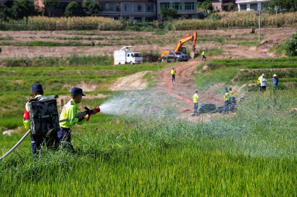 重庆市万州区恒合土家族乡,应急队员灌溉高标准农田。冉孟军摄