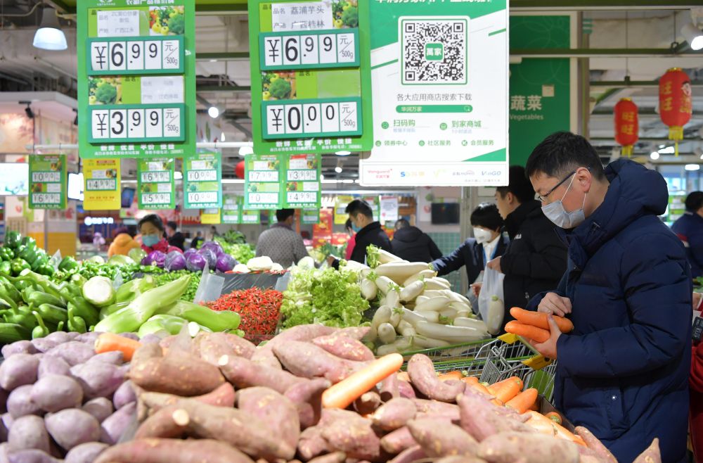 1月29日,市民在青岛市一家大型超市内采购蔬菜。新华社记者李紫恒摄