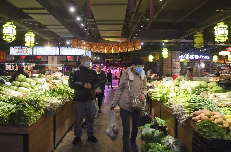 1月27日,武汉市民在菜场内选购蔬菜。新华社记者熊琦摄